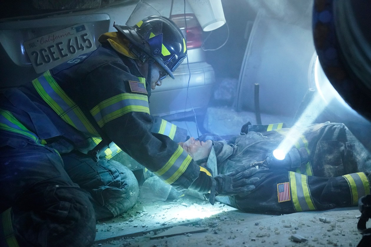 The first responders continue to deal with the fallout of a massive earthquake and its deadly aftershocks. Athena tries to keep the peace as Bobby and team continue to rescue victims from a collapsing high-rise hotel, both under the rubble and high above the ground. Maddie's first day on the job involves helping a pregnant couple deliver their baby safely.[2]
